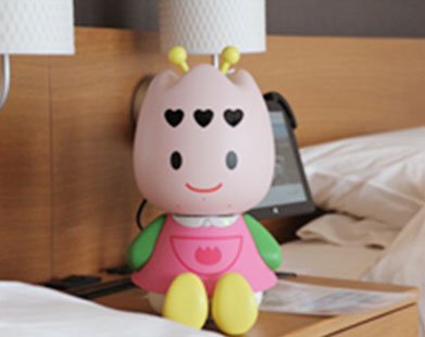 The Tuly Robot, developed jointly by Sharp and Huis Ten Bosch Co., Ltd., has been installed in rooms at the Henn-na Hotel* (“Strange Hotel”), a smart hotel at the Huis Ten Bosch theme park in Sasebo, Nagasaki Prefecture. The hotel opened on July 17, 2015. Tuly is the mascot of Huis Ten Bosch, and a lamp-sized Tuly Robot sits on a bedside table in each of the hotel’s rooms, acting as a personal concierge to make guests’ stay as comfortable as The Tuly Robot, developed jointly by Sharp and Huis Ten Bosch Co., Ltd., has been installed in rooms at the Henn-na Hotel* (“Strange Hotel”), a smart hotel at the Huis Ten Bosch theme park in Sasebo, Nagasaki Prefecture. The hotel opened on July 17, 2015. Tuly is the mascot of Huis Ten Bosch, and a lamp-sized Tuly Robot sits on a bedside table in each of the hotel’s rooms, acting as a personal concierge to make guests’ stay as comfortable as possible. Sharp also provided the Henn-na Hotel with porter robots that guide guests to their rooms and carry luggage.